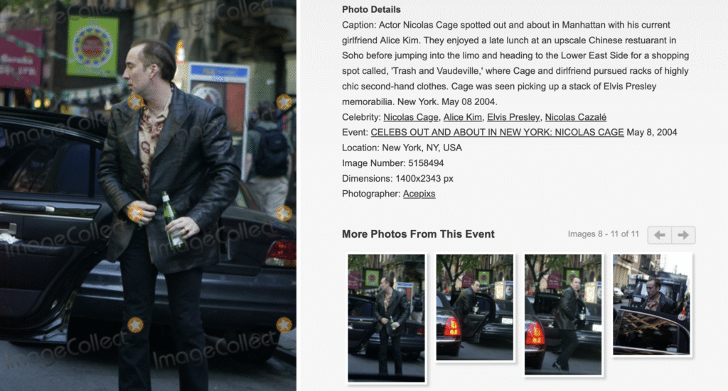 A simple search on Google of “nicolas cage and alice kim shopping trash and vaudeville” brought proof right before my eyes.
