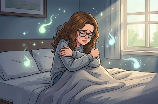 The mornings when she wakes up alone, she wakes up weeping.