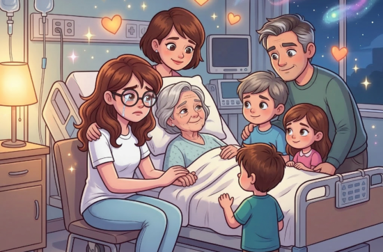 When she got there, the room was quiet except for the muffled sobs of her family, who were circling her bed as they had been when she left last night.