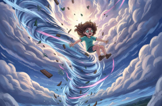She went up like Dorothy would have, had she not gone to Oz.